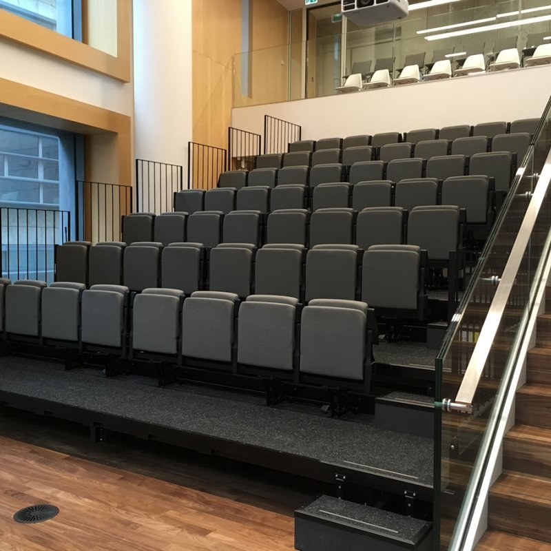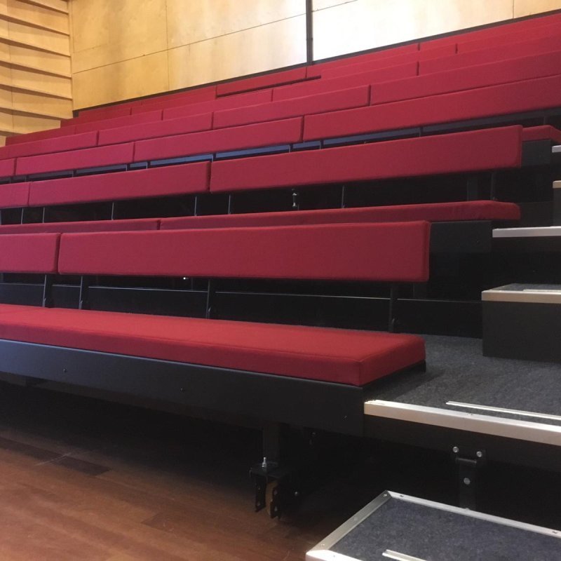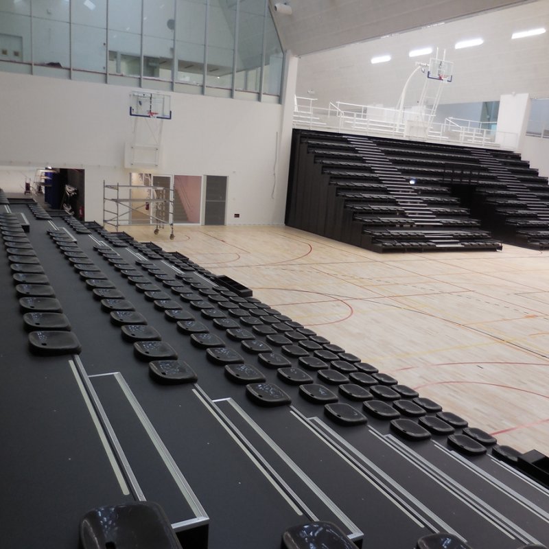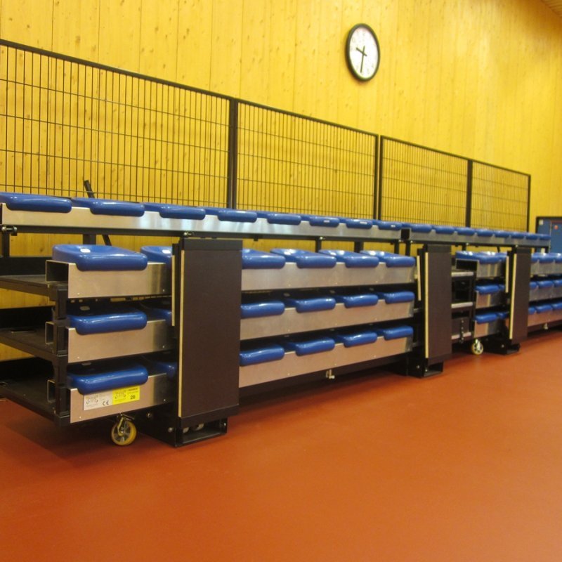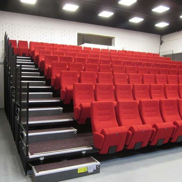Tribunes fixes, rétractables (ou télescopiques), mobiles pour les théâtres, les salles culturelles et polyvalentes, les salles de sport et les stades, les auditoriums d'entreprises et d'établissements d'enseignement.