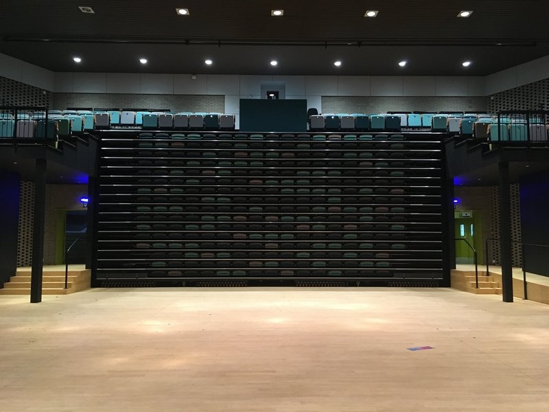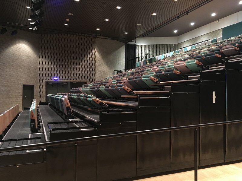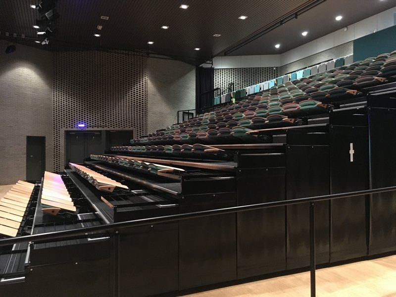 The propulsion with rigid chain results in a force, that simultaneously can be used for the automatic set up of the chairs when opening the platforms. Set-up time can easily be reduced to enable a better exploitation.