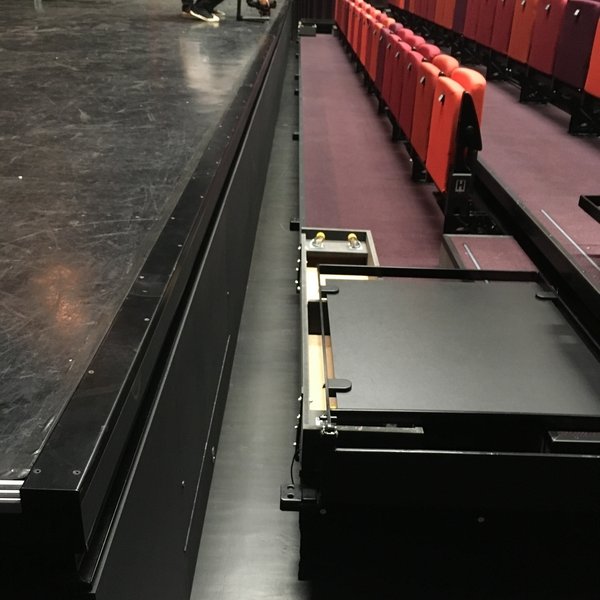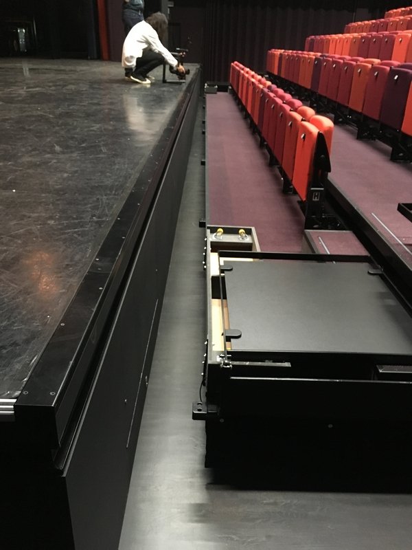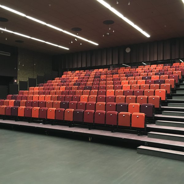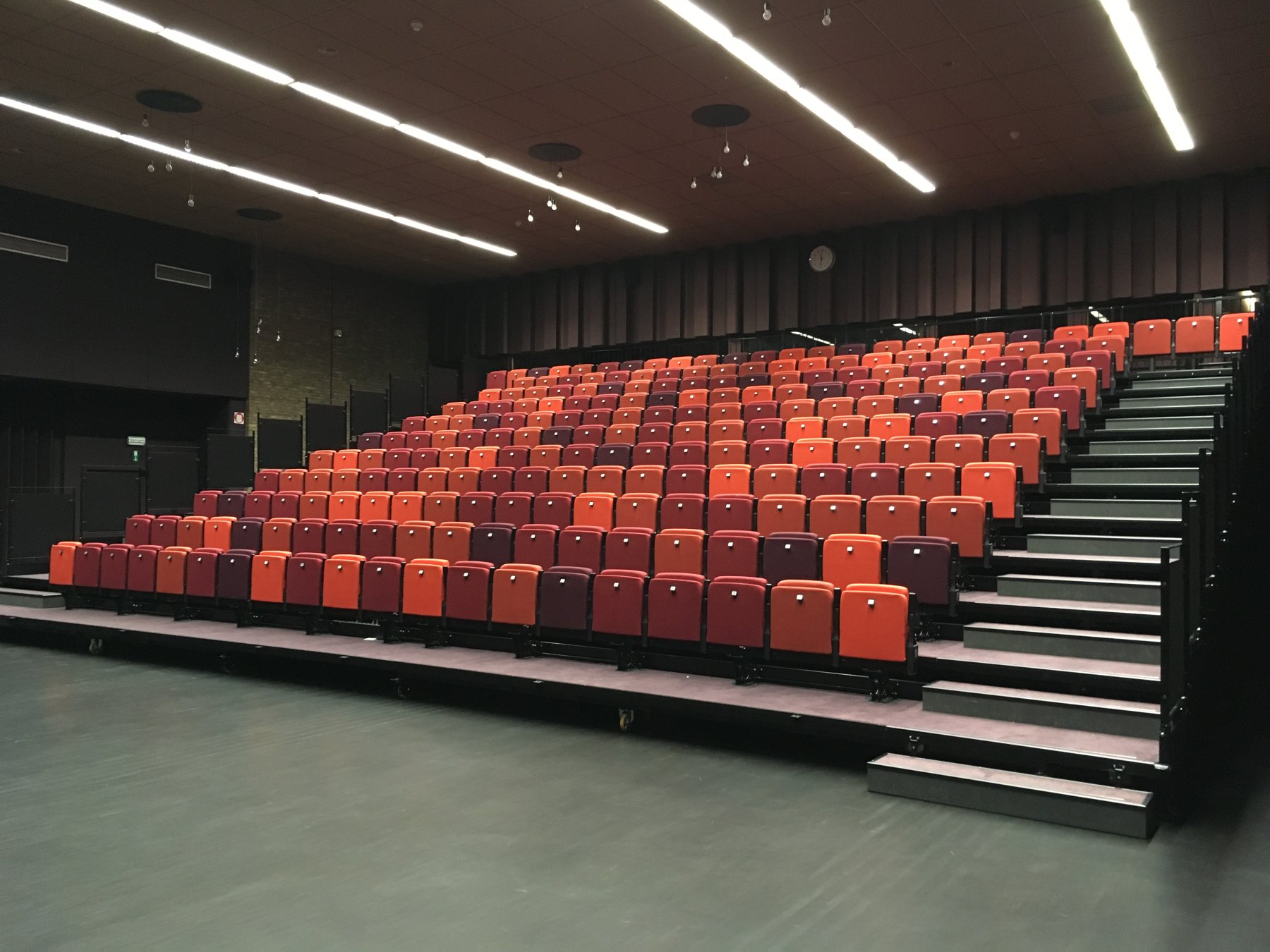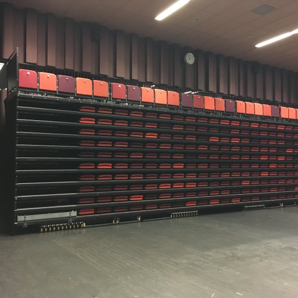 Based on the rigid chain propulsion the retractable grandstand can be moved in linear direction of the hall. Commonly used when the audience on the grandstand need a closer position to the stage.