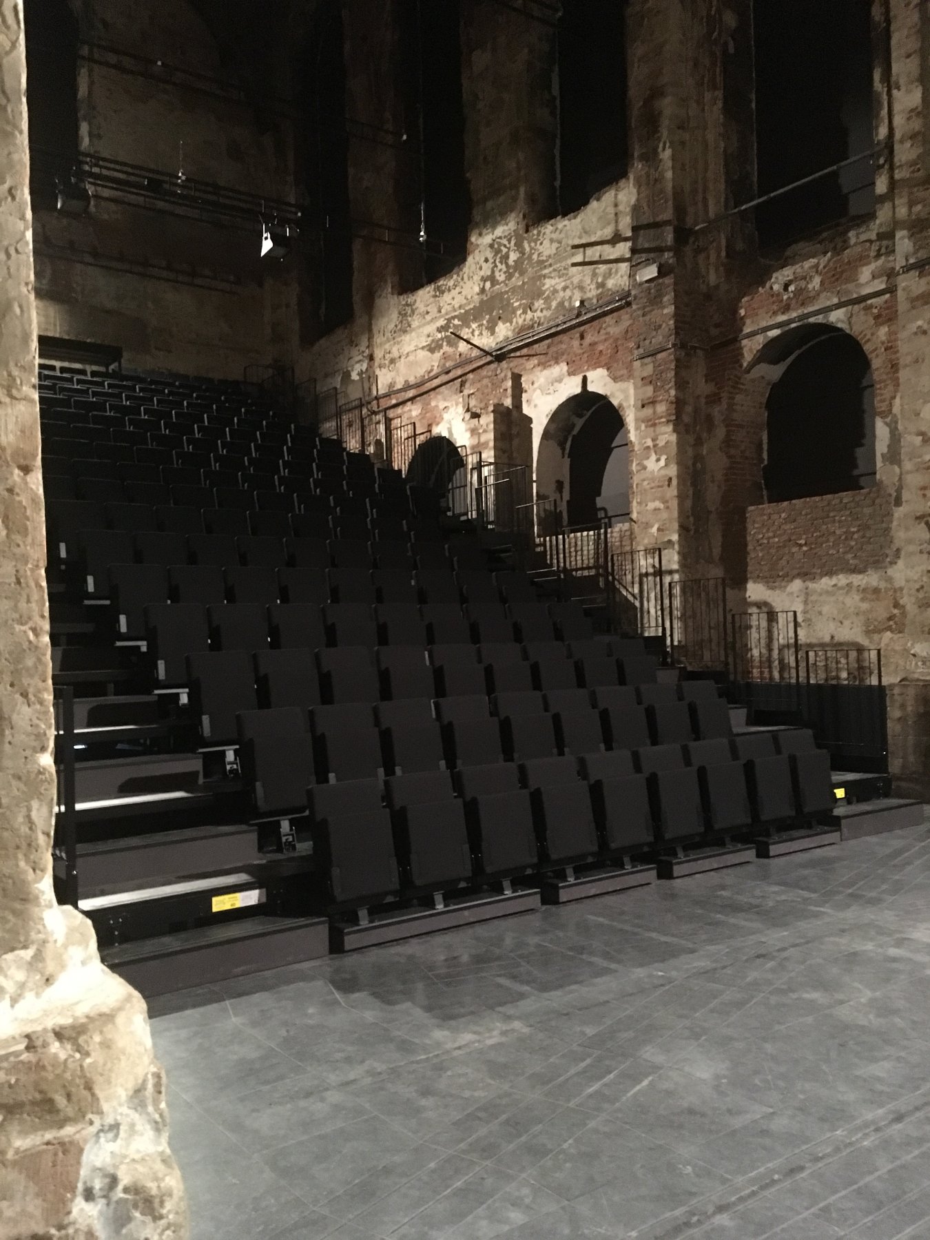 Tribune télescopique avec entraînement par chaîne de poussée à Assenede | La première ! Tribune COS