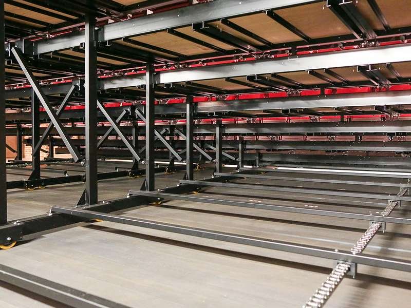 La propulsion par chaîne rigide est le meilleur système disponible pour faire fonctionner une tribune rétractable dans les bâtiments publics. Le mouvement d'ouverture ou de fermeture de la structure est entièrement guidé et n'utilise jamais la traction du sol sur lequel elle est construite.