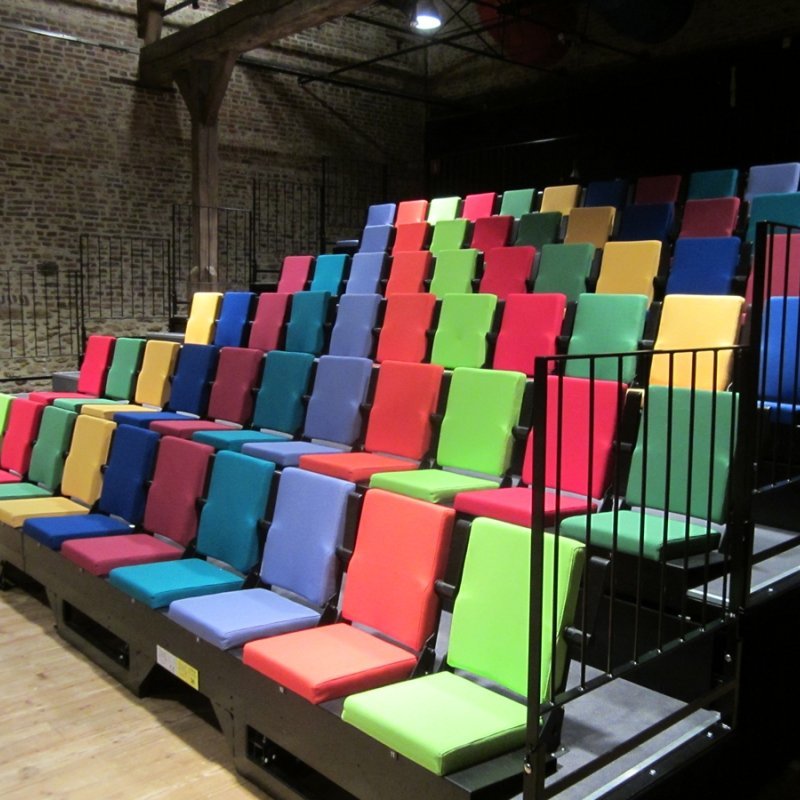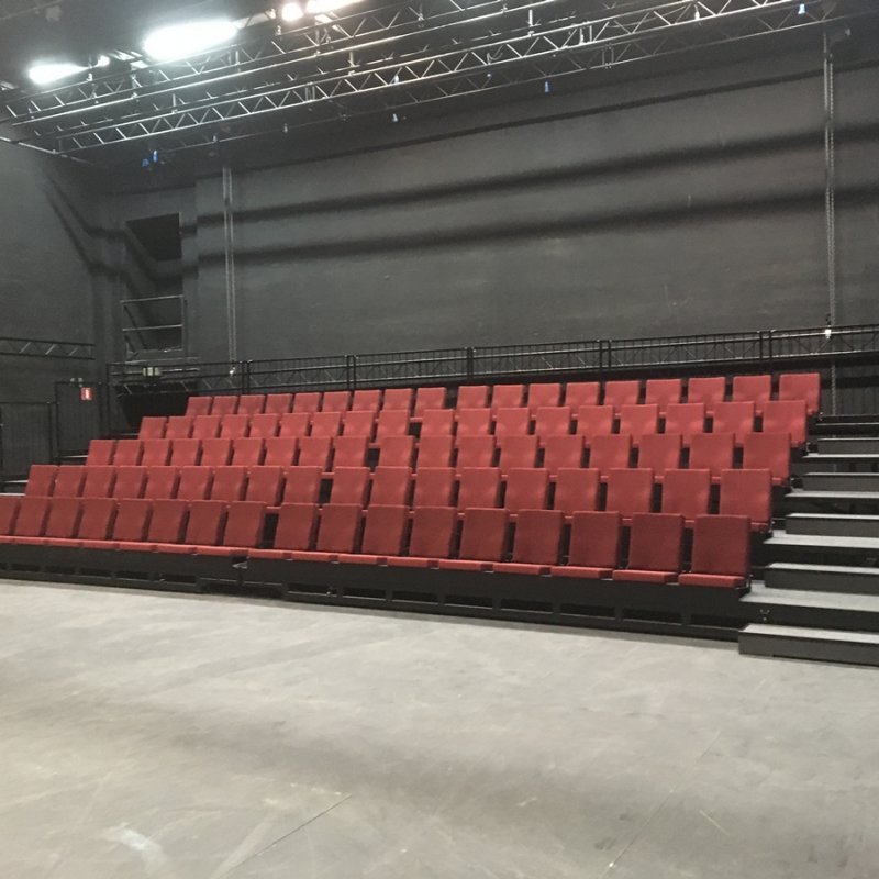 Tribunes fixes, rétractables (ou télescopiques), mobiles pour les théâtres, les salles culturelles et polyvalentes, les salles de sport et les stades, les auditoriums d'entreprises et d'établissements d'enseignement.